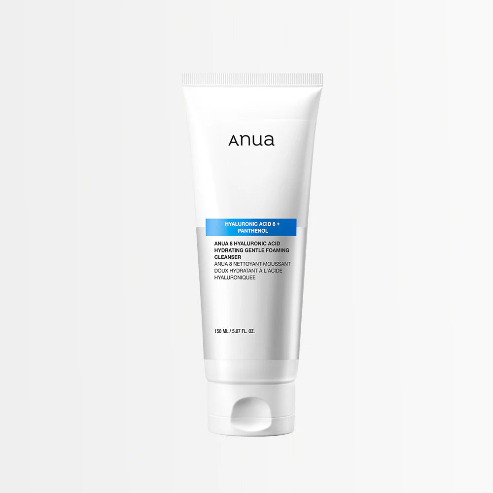 ANUA 8 Hyaluronic Acid Hydrating Gentle Foaming Cleanser is a mild facial cleanser formulated with 8 kinds of Hyaluronic Acid and Panthenol to hydrate skin and replenish skin barrier, while deeply cleansing pores without stripping skin.