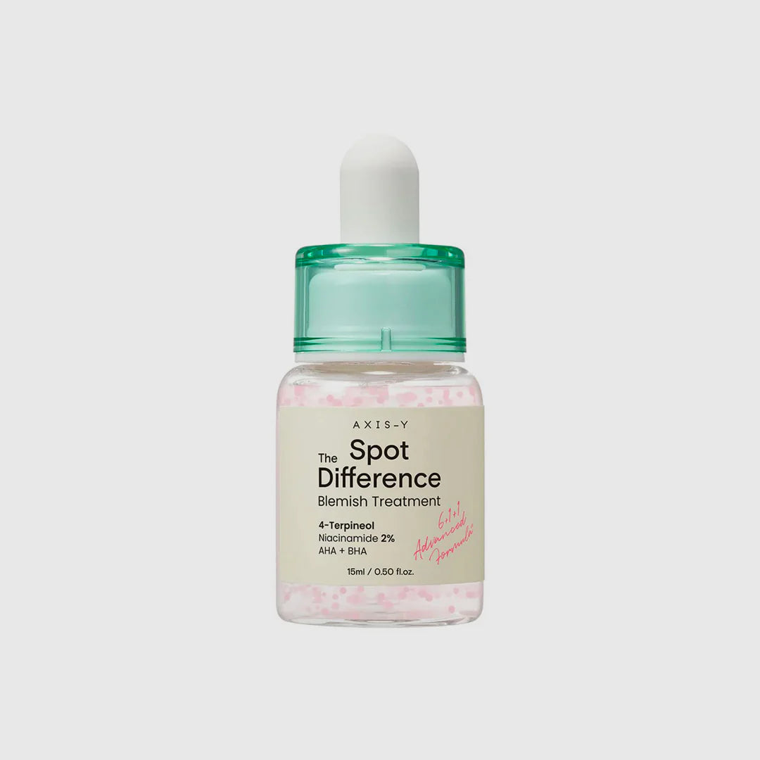 AXIS-Y Spot The Difference Blemish Treatment is a lightweight gel spot serum formulated with Tea Tree Extract, AHA and BHA to gently exfoliate skin, calm and soothe breakouts.