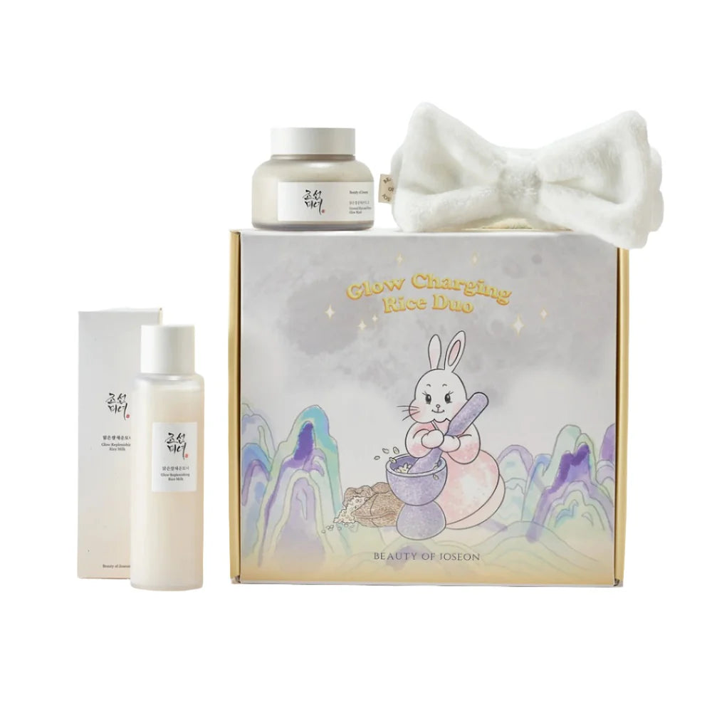 The Glow Charging Rice Duo combines the potent benefits of rice with synergistic ingredients like honey and kaolin. This exclusive kit includes the Glow Replenishing Rice Milk, Ground Rice and Honey Mask, and a BOJ Moon Rabbit Cleansing Headband. Together, these products work to revitalize and hydrate your skin, control sebum, and enhance radiance. Drawing from centuries of Korean skincare wisdom, Beauty of Joseon embraces the nourishing properties of rice, a revered ingredient in traditional beauty routines.