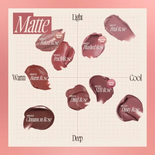 A curated range of rose shades designed to complement various skin tones, offering versatile, everyday color options.