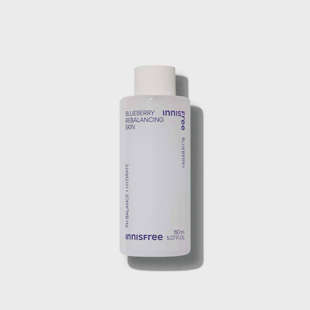 Innisfree Blueberry Rebalancing Skin is a mildly acidic toner enriched with antioxidant-rich blueberry extract and moisturizing glycerol. It helps hydrate the skin while restoring its natural pH balance to the optimal level of 5.5.