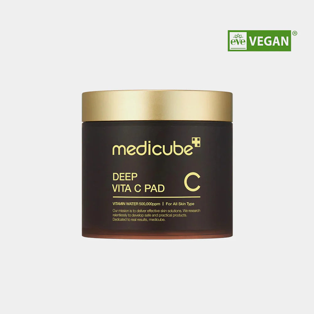 Medicube Deep Vita C Pad - vegan toner pads pre-soaked in the essence formulated with Sea Buckthorn Extract (renowned for its rich vitamin C content) to help improve post-acne marks, dark spots, and even out the skin tone. The vibrant yellow color of these pads comes naturally from the sea buckthorn extract