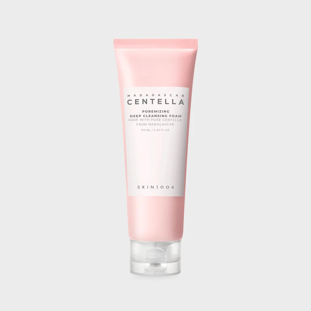 SKIN1004 Madagascar Centella Poremizing Deep Cleansing Foam is formulated with centella asiatica extract from Madagascar and pink mineral salts to soothe the skin, while rich and creamy foam deepIy cleanses pores and skin impurities.