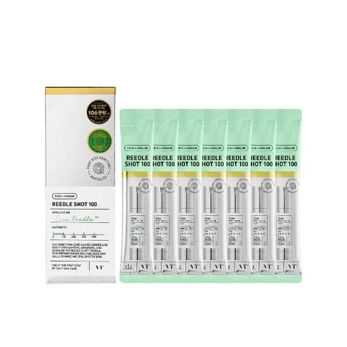 VT Reedle Shot 100 is a concentrated ampoule formulated with Centella asiatica extract and hyaluronic acid to deeply moisturize skin and replenish skin barrier for a soft and hydrated finish.